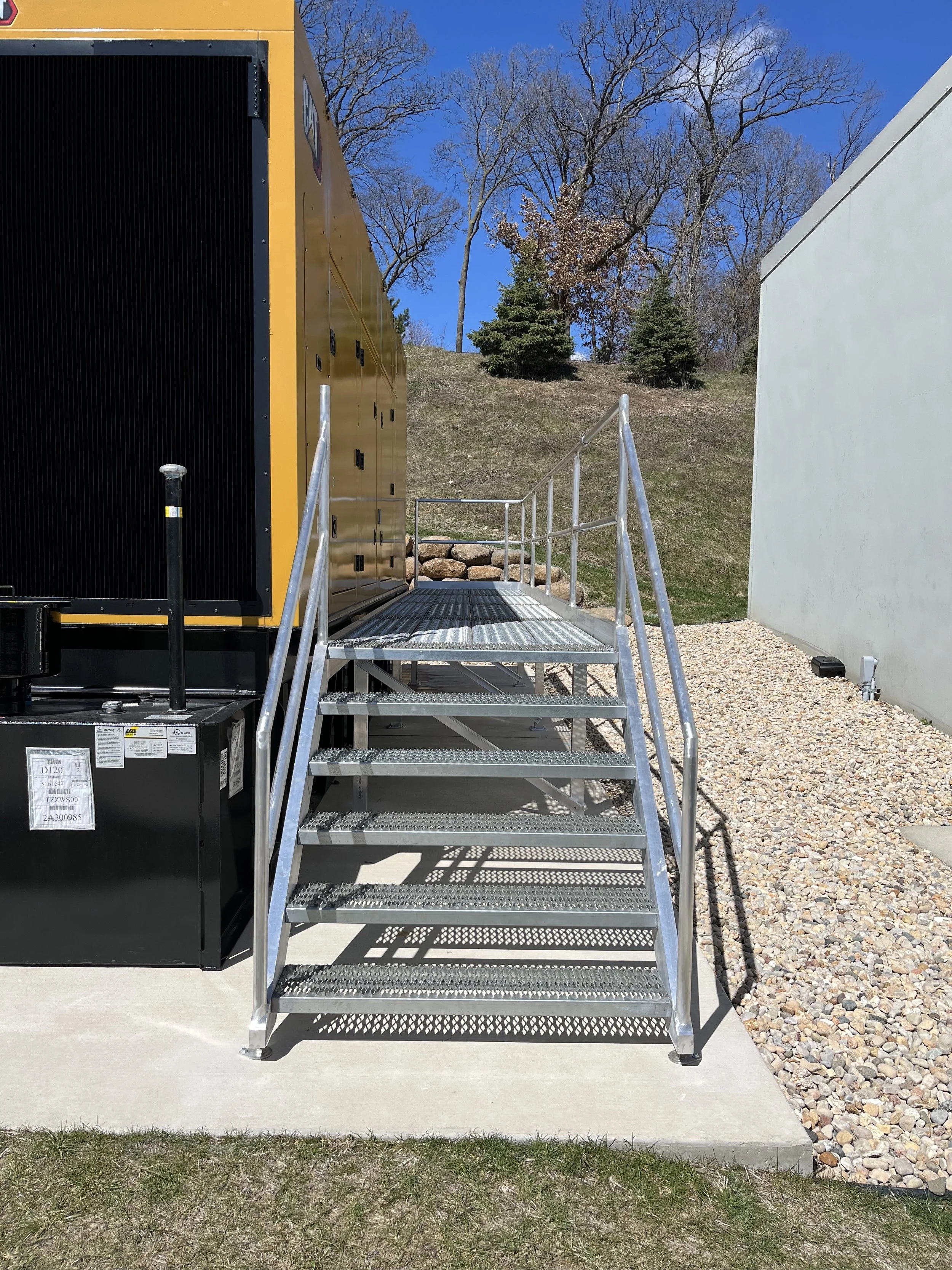 The Milwaukee custom metal fabricators at 3Up Metal Works recently created and installed this platform around a generator in Middleton, Wis. The platform offers stable, safe access to the unit's controls and maintenance panels.